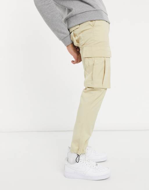 Topman belted skinny cargo trousers in stone Very well made.