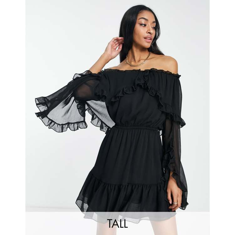 Topshop Tall frill ruffle bardot mini dress in black ASOS Very well made.