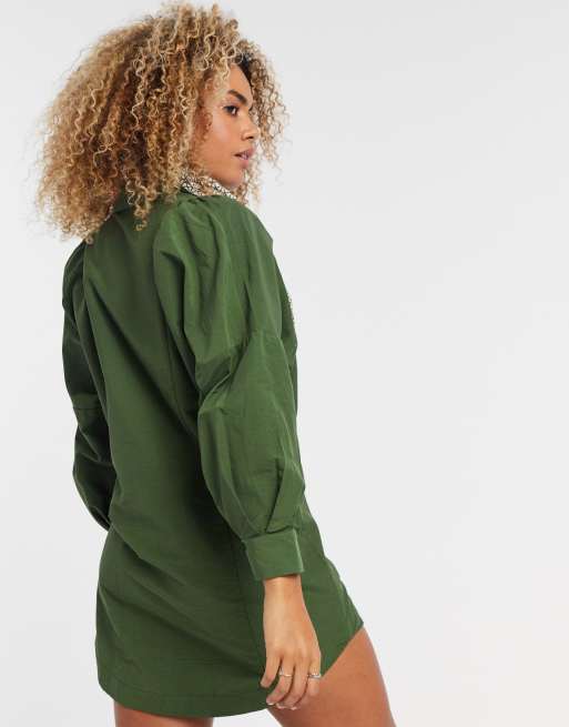 TOPSHOP IDOL KHAKI PU OVERSIZED ZIP SHIRT DRESS Military green Very well made.