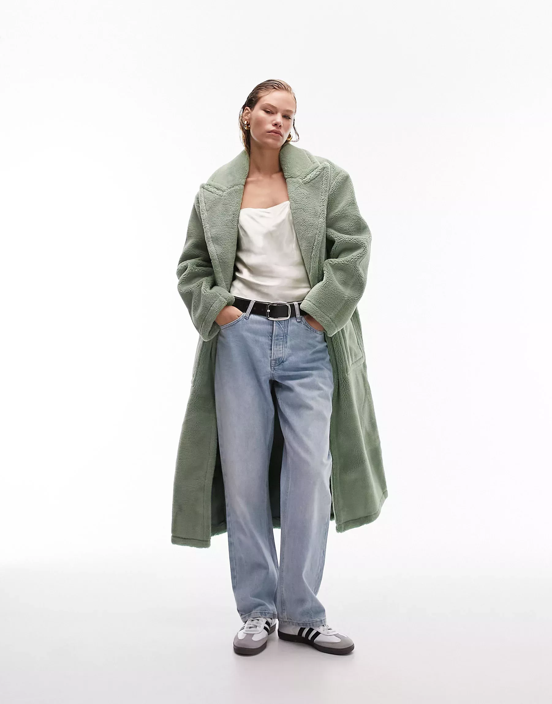 Topshop long line borg coat in mint curated on LTK Very well made.
