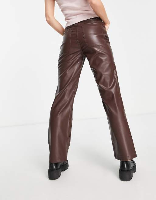 Topshop Petite faux leather straight trousers in brown ASOS Very well made.