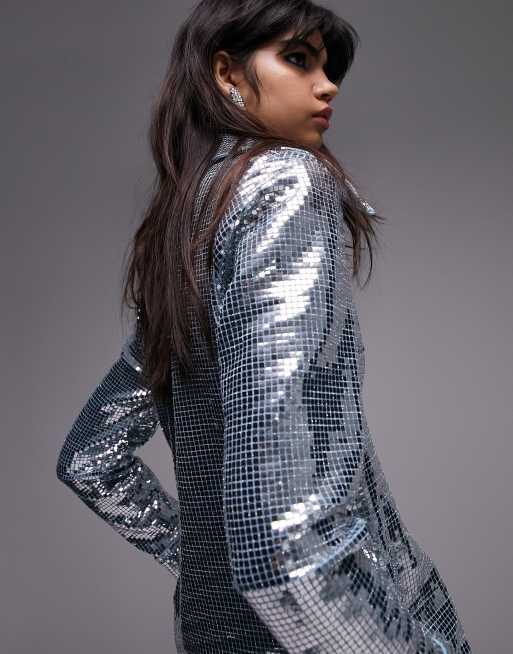 Topshop Tailored flat sequin shirt in silver blue Very well made.