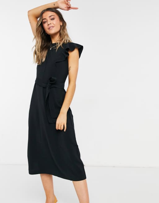 Oasis Plisse Belted Midi Dress in Black Lyst UK Very well made.