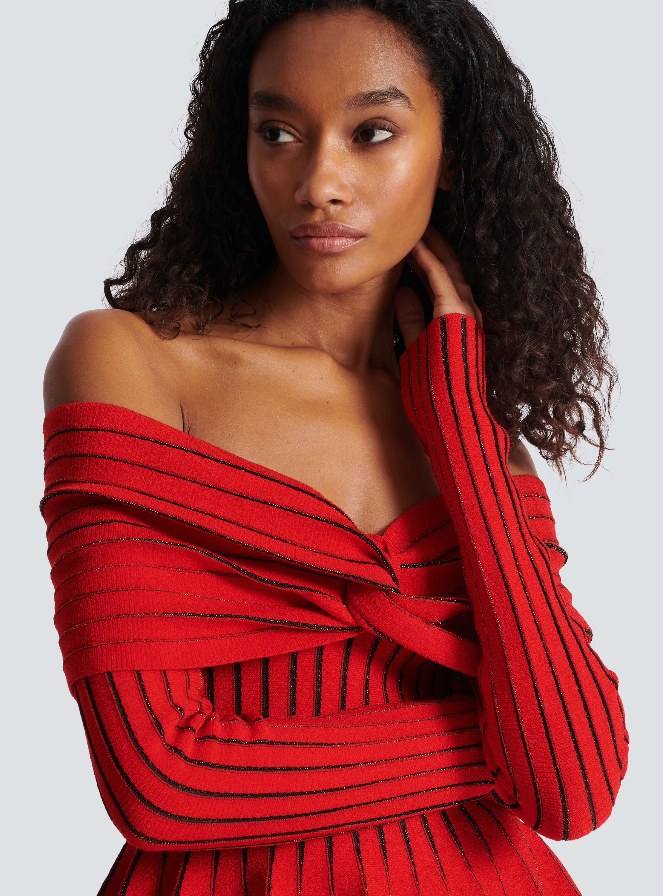 Knotted off the shoulder top red Women BALMAIN Very well made.