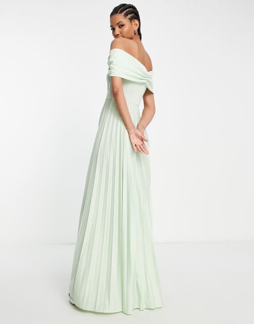 Cuffed Off the shoulder Pleated Faux Wrap Maxi Bridesmaid Dress In Very well made.