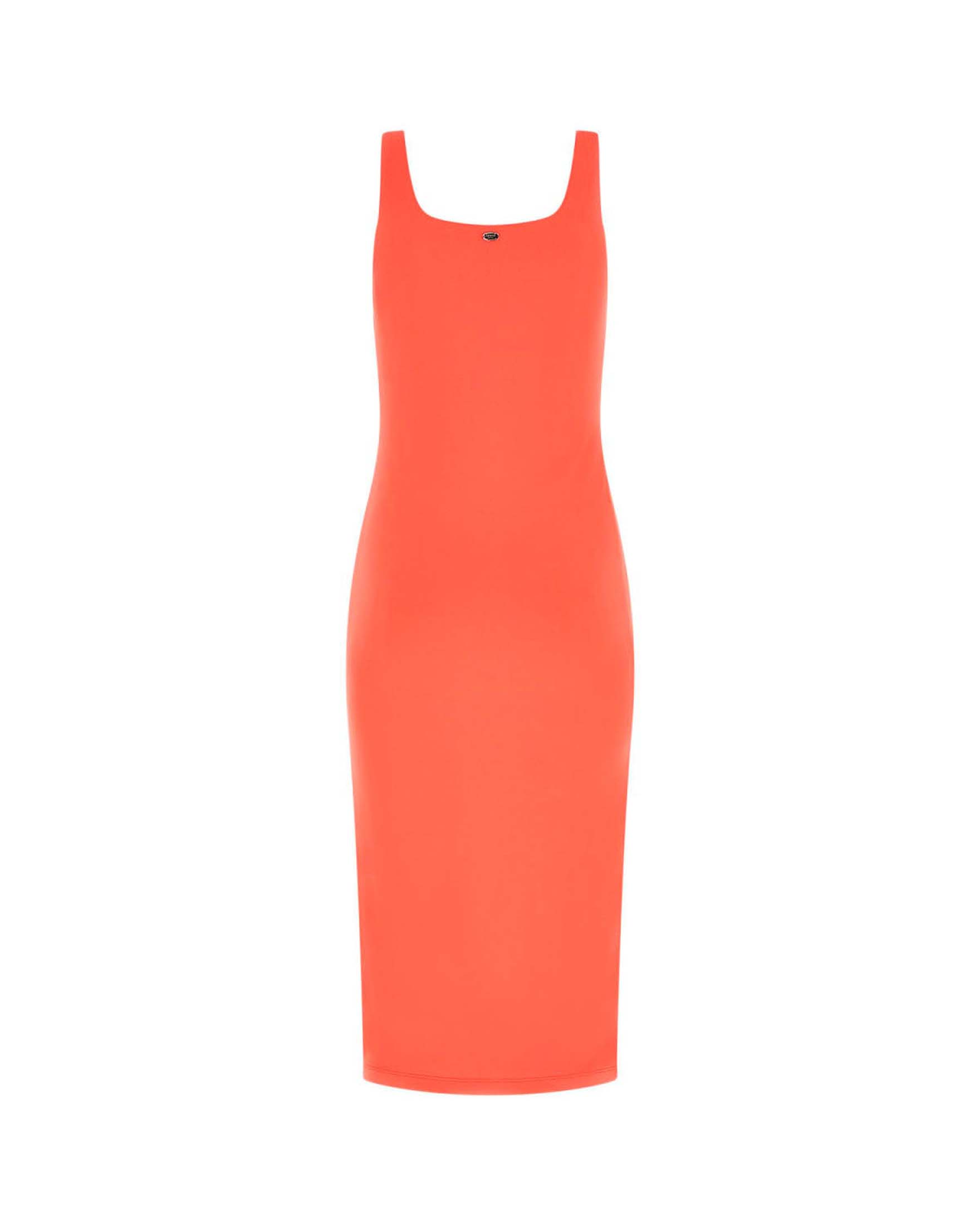 Abito midi a tubino aderente color corallo in lycra con spalline Very well made.