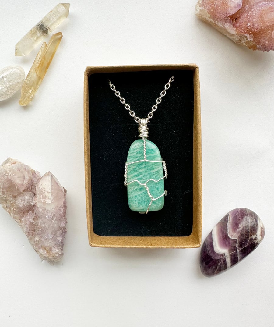 Amazonite Crystal necklace wire wrapped jewellery turquoise necklace boho Very well made.
