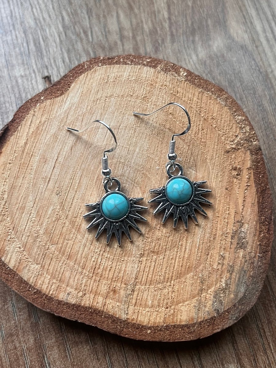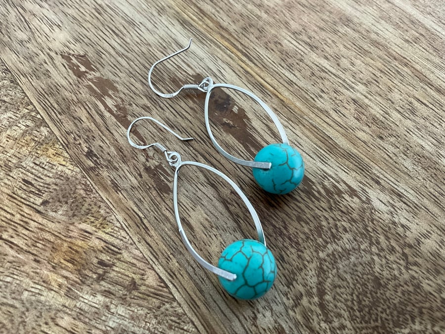 boho turquoise dangle earrings on sterling silver hooks Very well made.