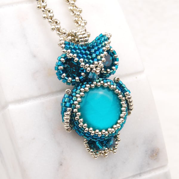 Beaded owl pendant with beaded chain in teal bl Folksy Very well made.