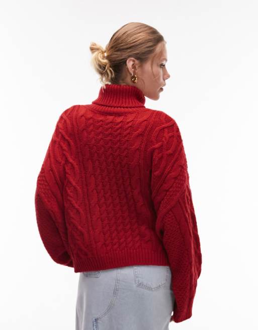 Topshop knitted high neck cable detail jumper in red Very well made.