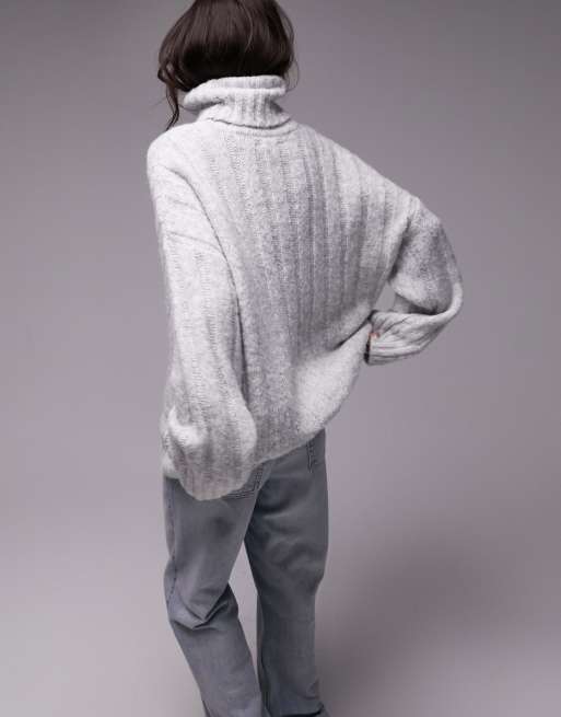 Topshop knitted roll neck wide rib jumper in grey Very well made.