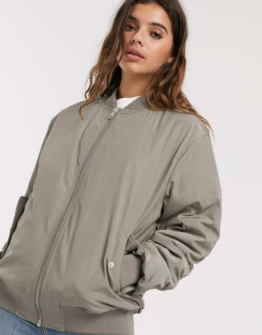 ASOS DESIGN oversized twill bomber jacket in khaki Very well made.