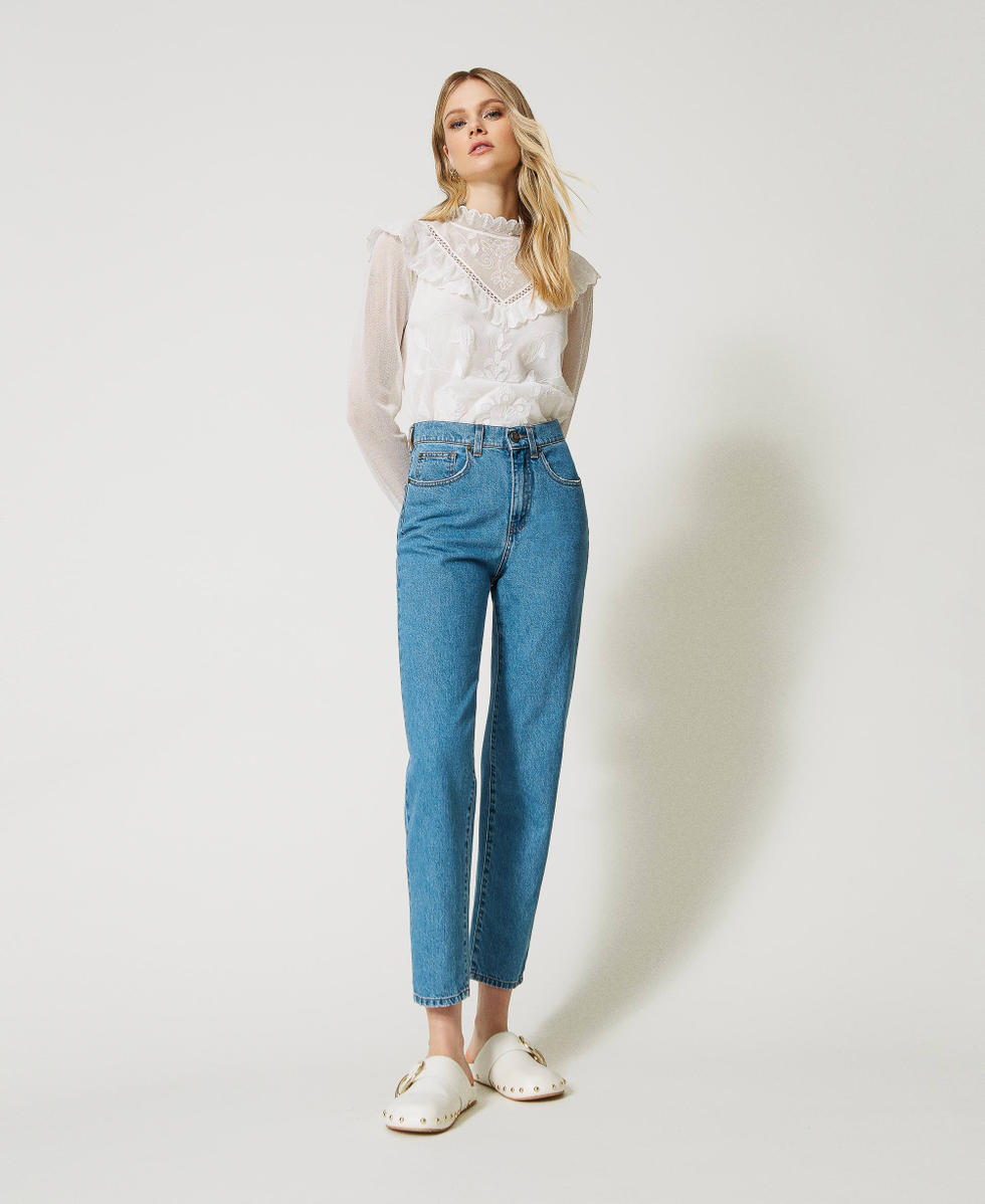 Slim fit jeans with floral Oval T Woman Blue TWINSET Milano Very well made.