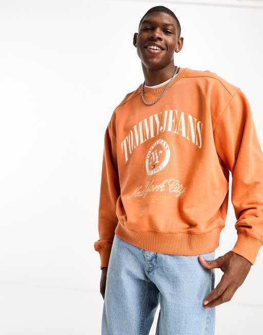 Tommy Jeans boxy varsity crew sweatshirt in orange ASOS Very well made.
