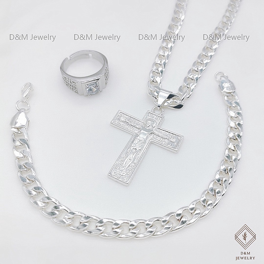 D M Jewelry 925 Silver Necklace with Cross pendant Bracelet Very well made.