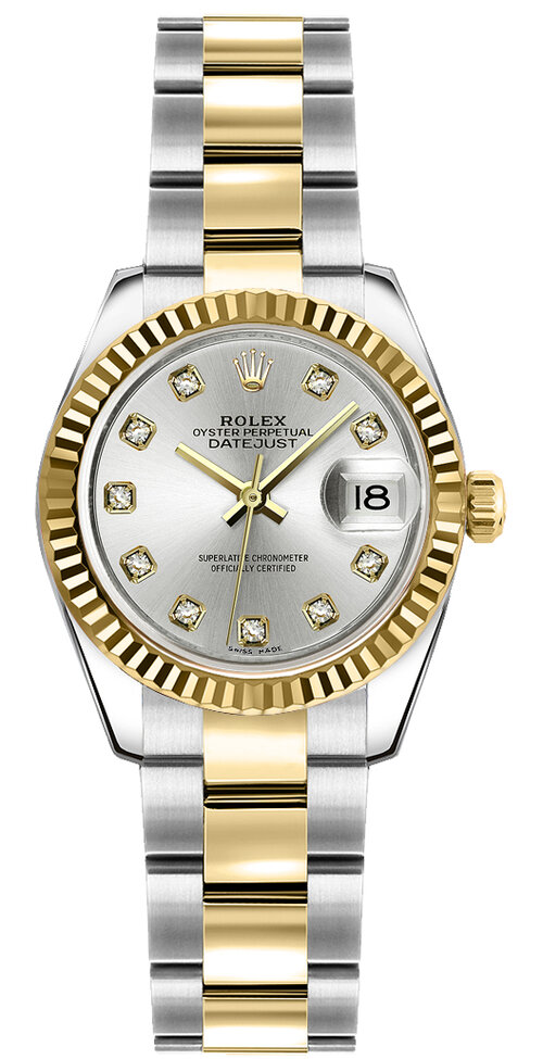 Rolex Datejust Watch in Silver Gold w Diamond Dial UFO No More Very well made.