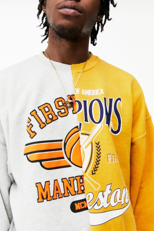 UO Yellow Grey Spliced Varsity Sweatshirt Urban Outfitters UK Very well made.