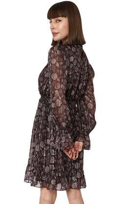 Buy VERO MODA Brown Printed Round Neck Polyester Women s A Line Very well made.