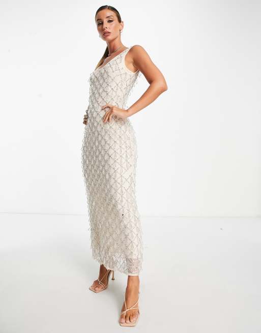 ASOS DESIGN Vestito midi neutro con decorazione a gioiello Very well made.