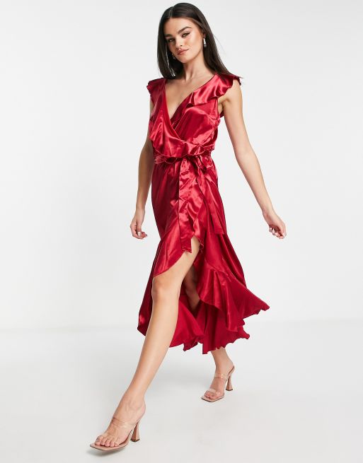 Little Mistress Vestito avvolgente rosso autunnale con volant ASOS Very well made.