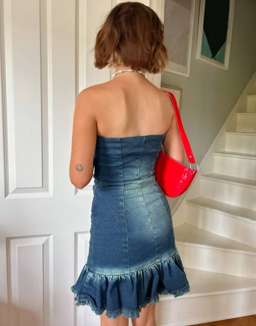 Daisy Street X Chloe Davie Vestito a fascia corto senza spalline in denim stile Y2K Very well made.