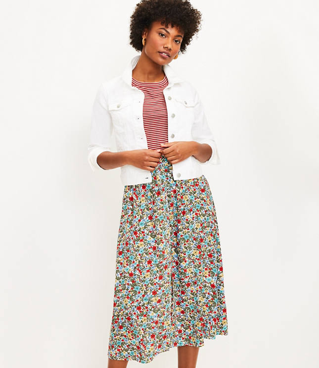 Petite Floral Button Pull On Midi Skirt Very well made.