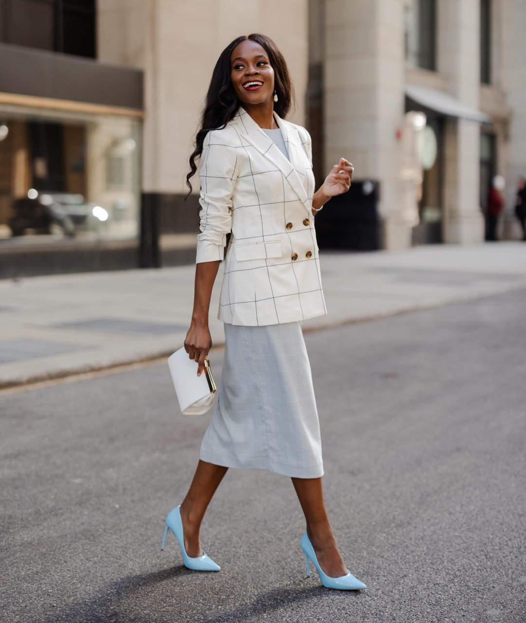 The Petite Fitted Double Breasted Blazer in Windowpane Very well made.