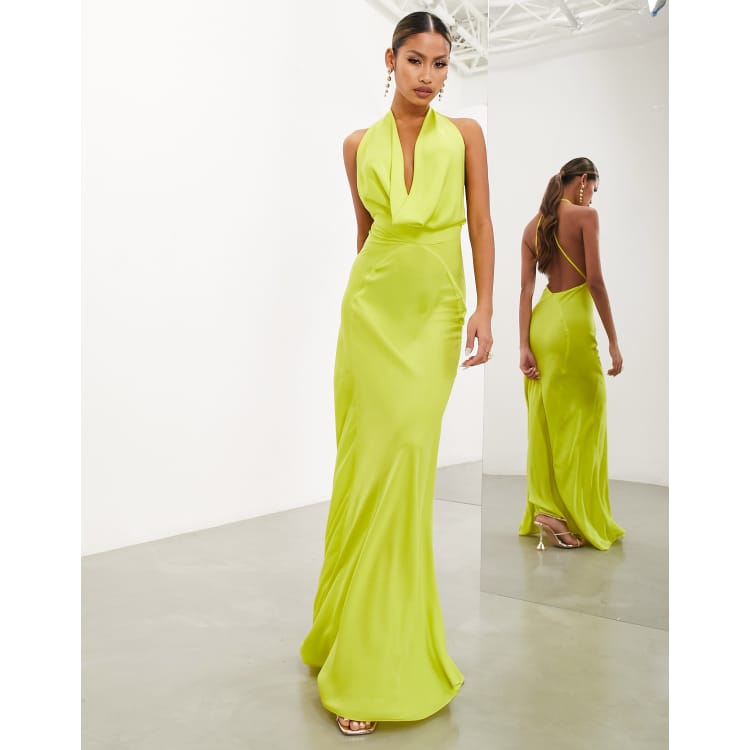 ASOS Edition Vestito lungo in raso verde lime con scollo ad Very well made.