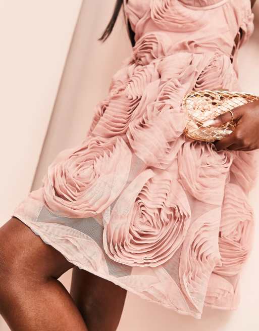 ASOS Luxe Vestito skater a fascia con corsetto rosa con fiori 3D Very well made.