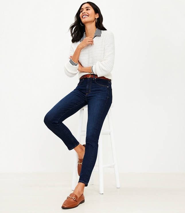 Petite Curvy High Rise Skinny Jeans in Classic Dark Indigo Wash Very well made.