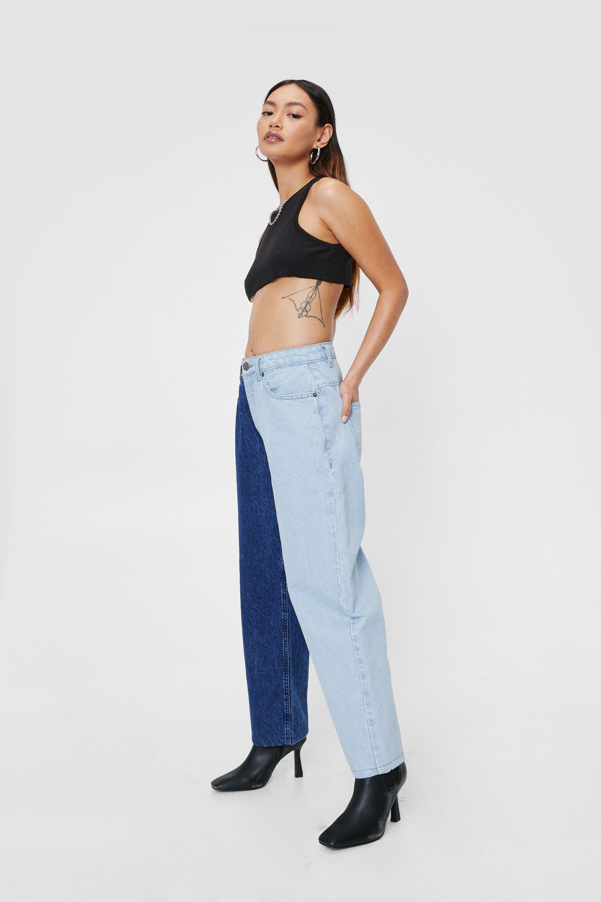 Petite Two Tone High Waisted Straight Leg Jeans Very well made.