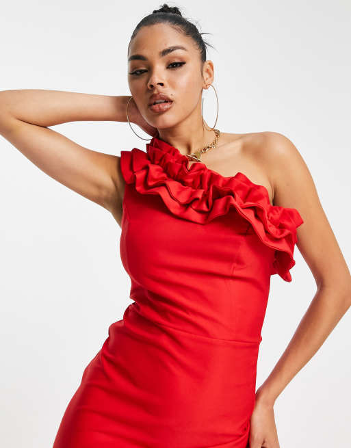 Trendyol Vestito lungo monospalla rosso con ruches ASOS Very well made.