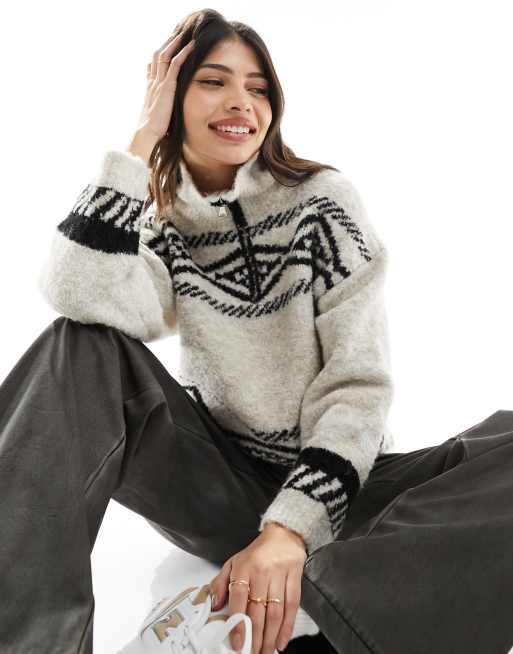 Vila high neck zip through jumper in mono print ASOS Very well made.