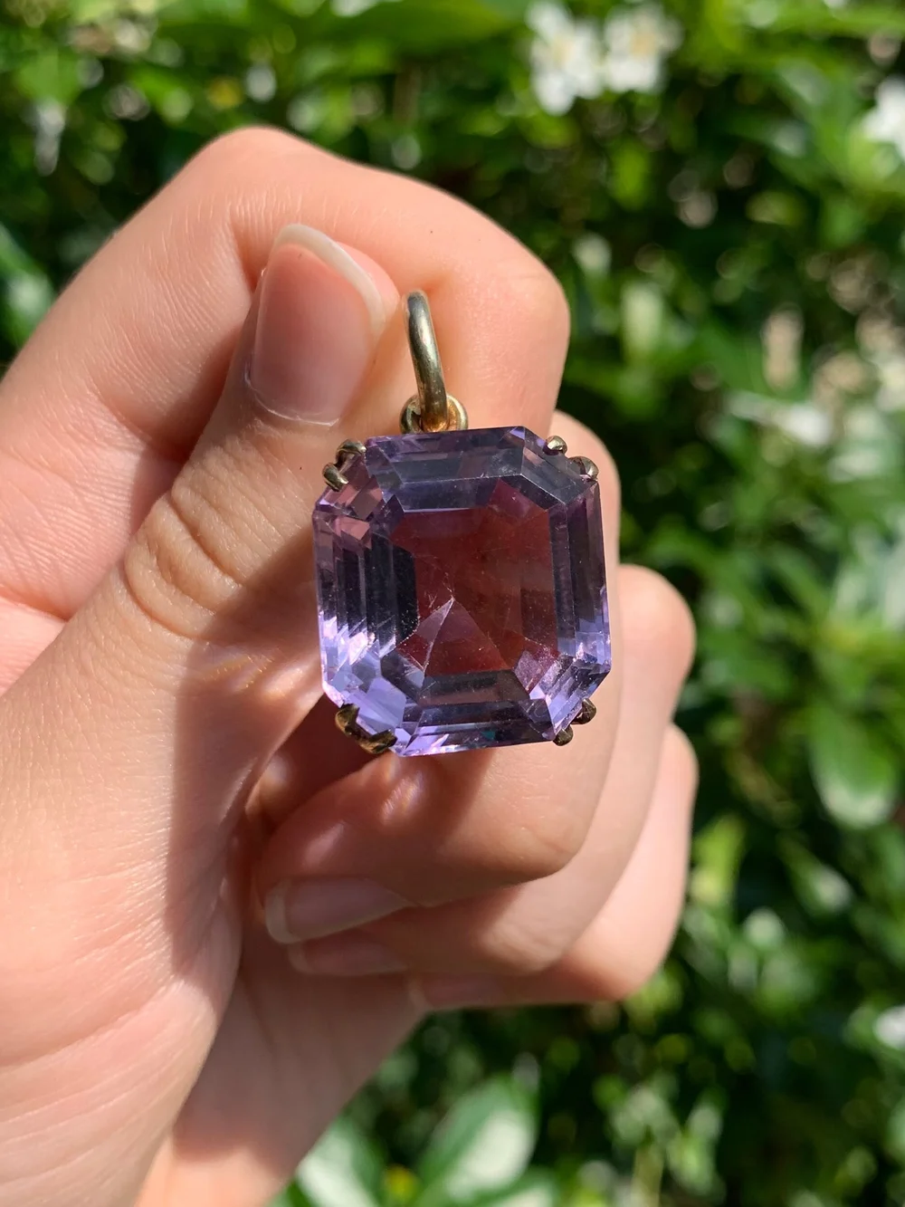 Vintage Large 20 CTW Amethyst Pendant in Gold Boylerpf Very well made.