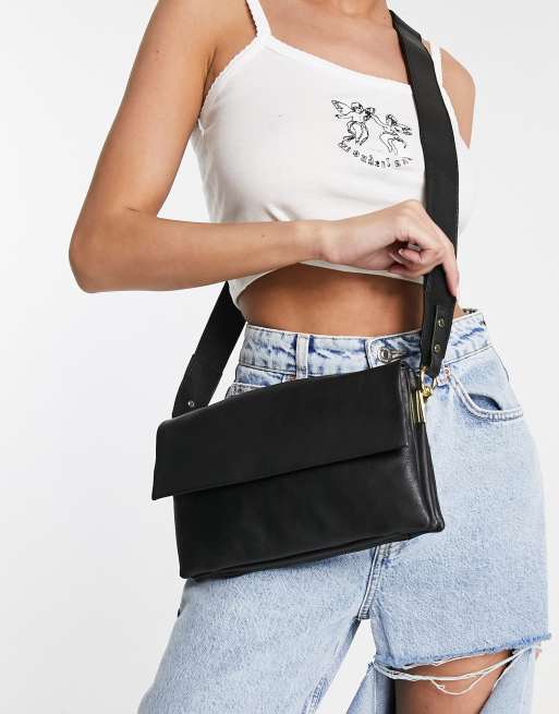 ASOS DESIGN Borsa a tracolla in pelle nera con battente e Very well made.