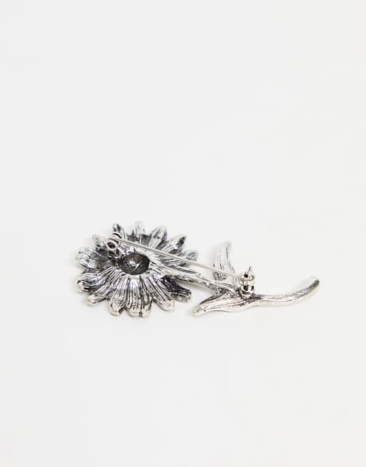 ASOS DESIGN wedding brooch with flower in silver tone ASOS Very well made.
