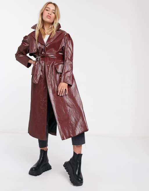 Palones Croydon Burgundy PU Trench Coat in Burgundy ASOS Very well made.