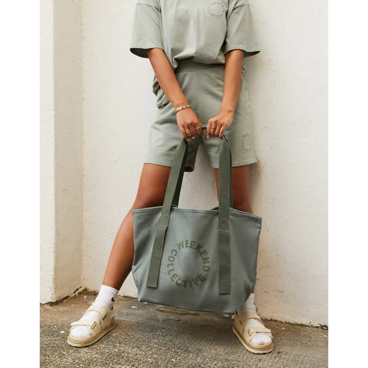ASOS Weekend Collective canvas tote bag in sage ASOS Very well made.