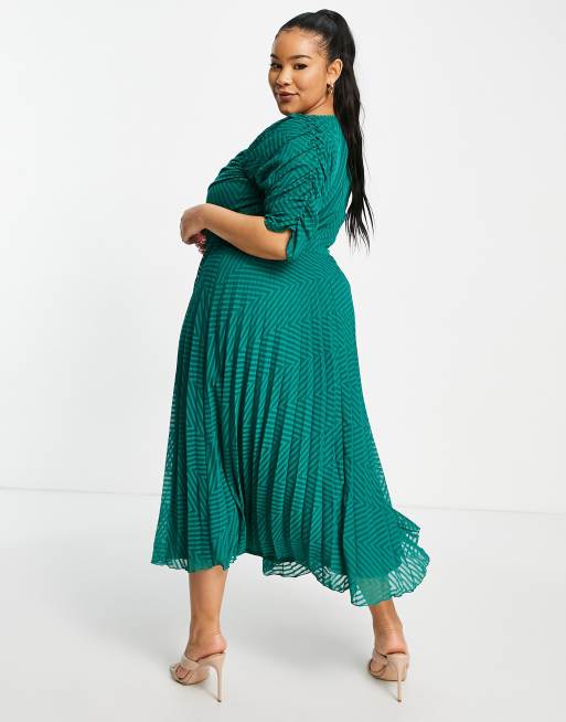 ASOS DESIGN Curve ruched front pleated midi dress with shirred Very well made.