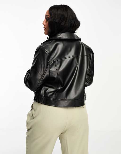 ASOS DESIGN Curve faux leather clean top collar jacket in black Very well made.