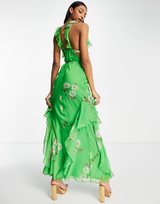 ASOS DESIGN Curve cape back dipped hem maxi dress in green floral Very well made.