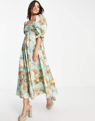 ASOS EDITION empire midi dress with full skirt in green floral Very well made.