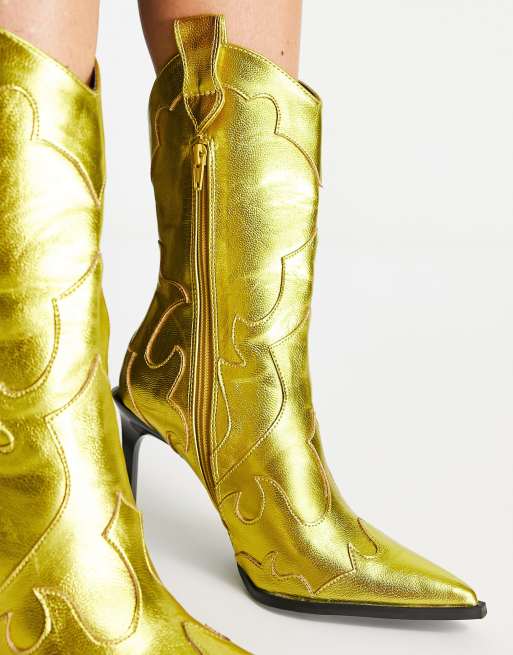 ASOS DESIGN Andi flat western boots in gold mirror ASOS Very well made.