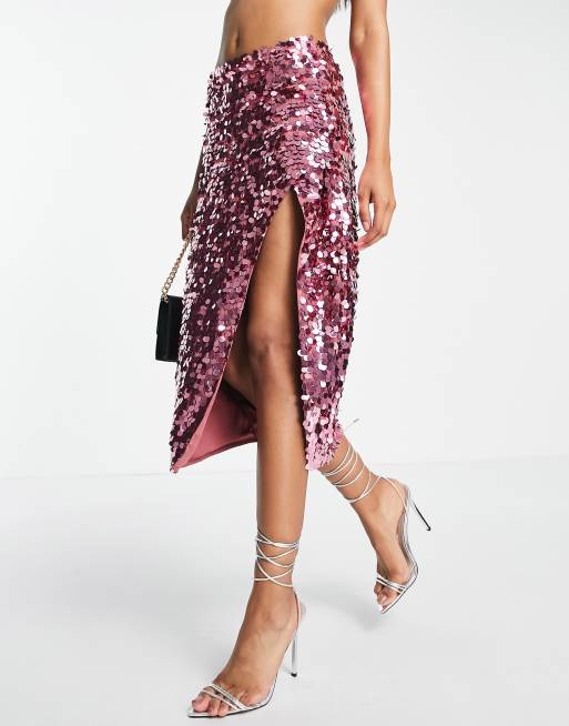 ASOS DESIGN Gonna midi rosa profondo con paillettes e spacco Very well made.