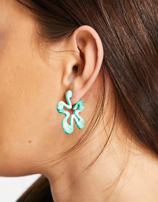 ASOS DESIGN hoop earrings in abstract squiggle design in green ASOS Very well made.