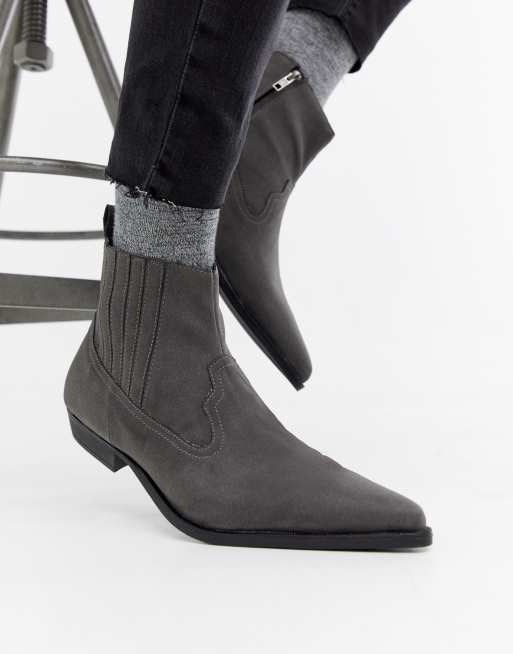 ASOS DESIGN cuban heel western chelsea boots in grey faux suede ASOS Very well made.