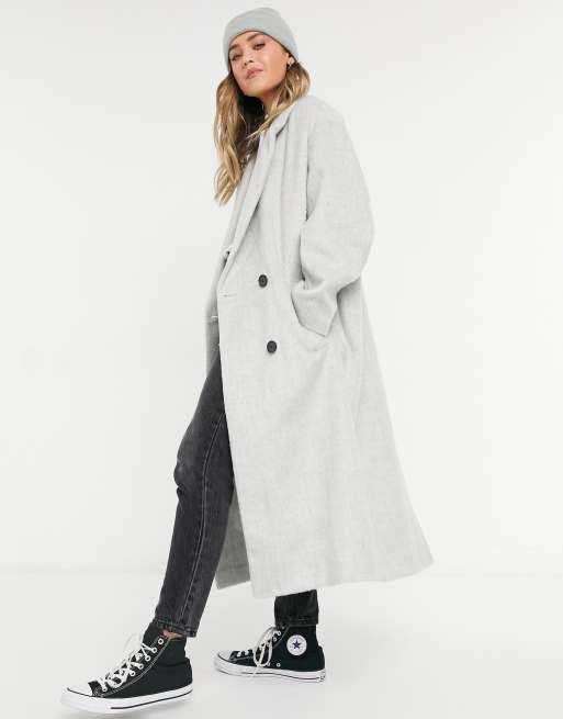 ASOS DESIGN luxe brushed maxi coat in grey ASOS Very well made.