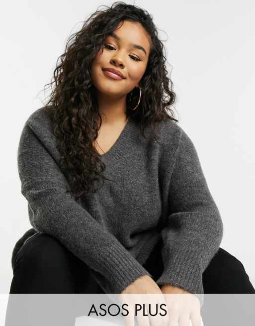 ASOS DESIGN Curve oversized jumper with v neck in grey ASOS Very well made.