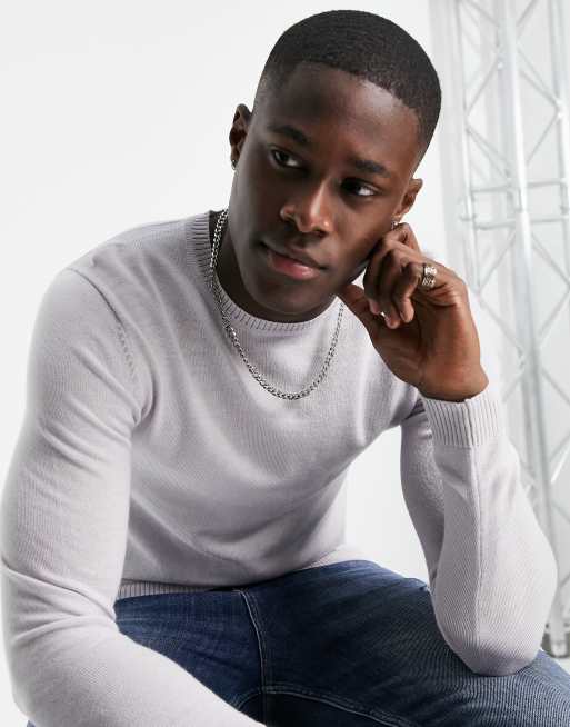 ASOS DESIGN muscle fit merino wool crew neck jumper in ice grey ASOS Very well made.