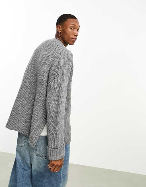 ASOS DESIGN chunky jumper with open collar in grey ASOS Very well made.